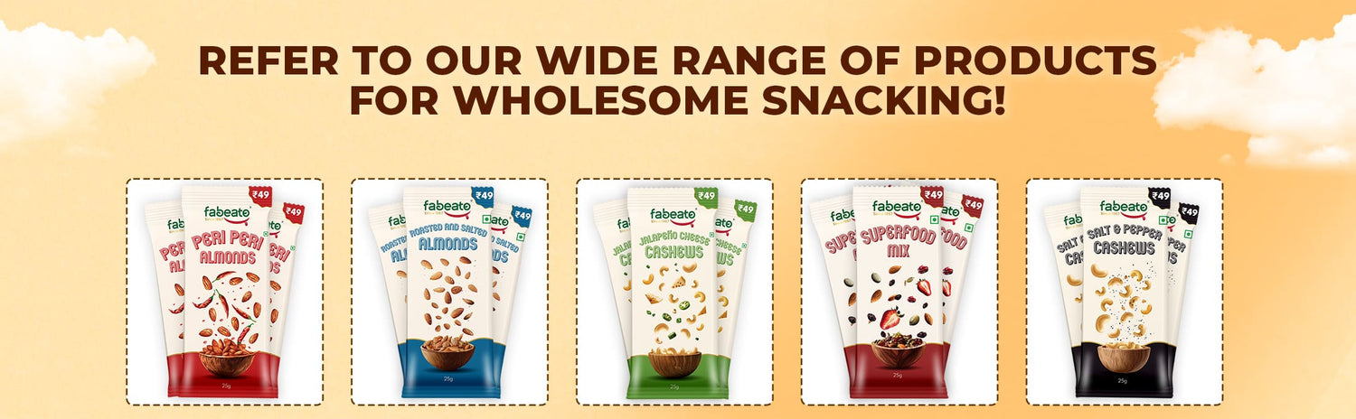 - This ultimate snack collection features a tantalizing mix of Super Food Mix, Roasted & Salted Almonds, Salt and Pepper Cashews, Jalapeno Cheese Cashew Pack, and Peri Peri Almonds.